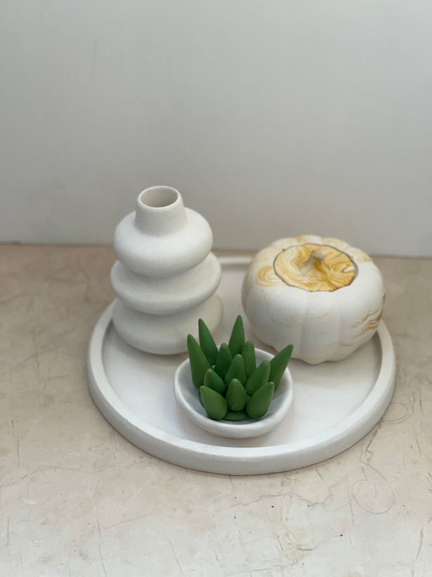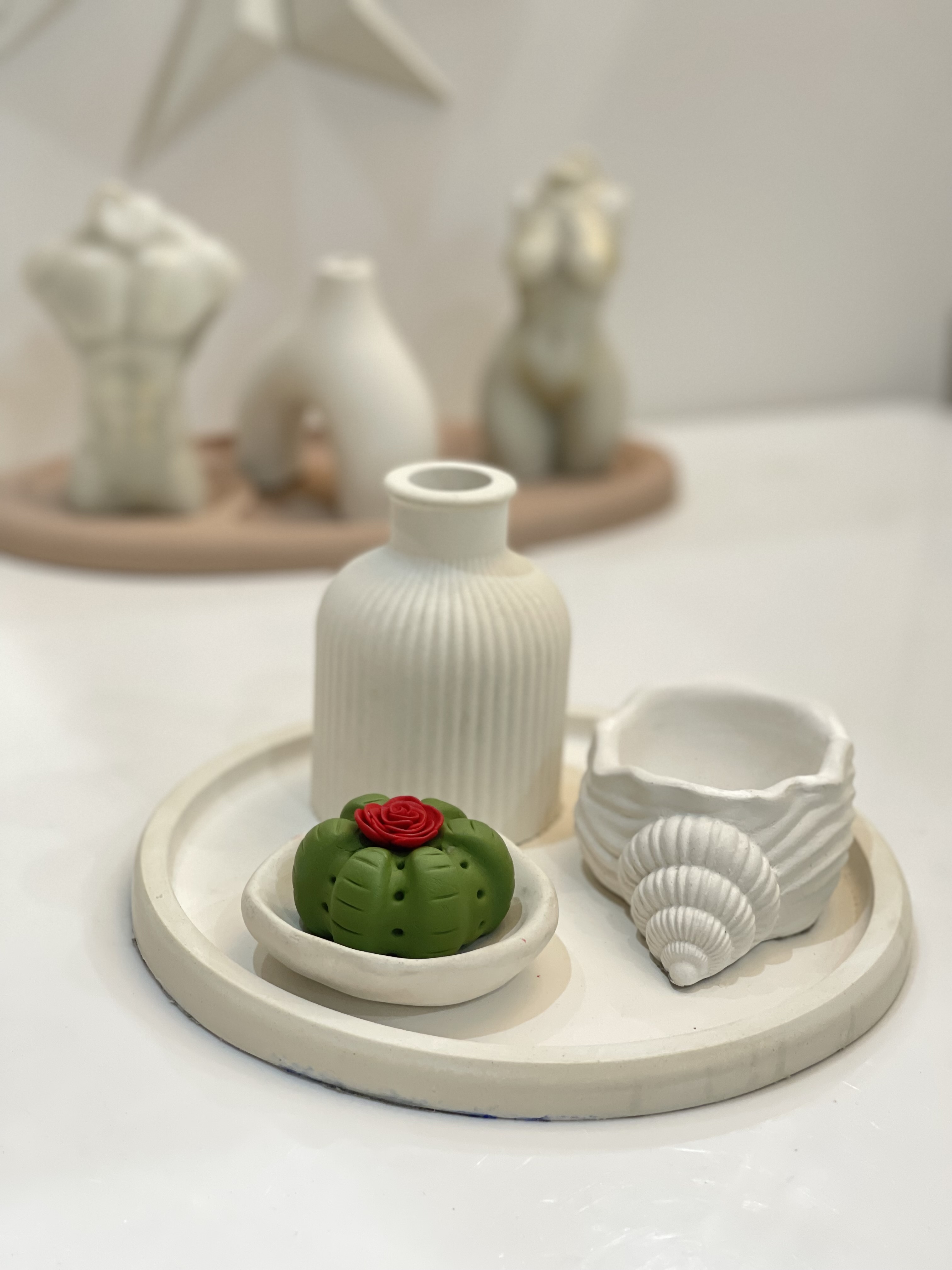 ست ۴ تیکه بتنی گلدان -شات شمع - سینی -مینی شات
